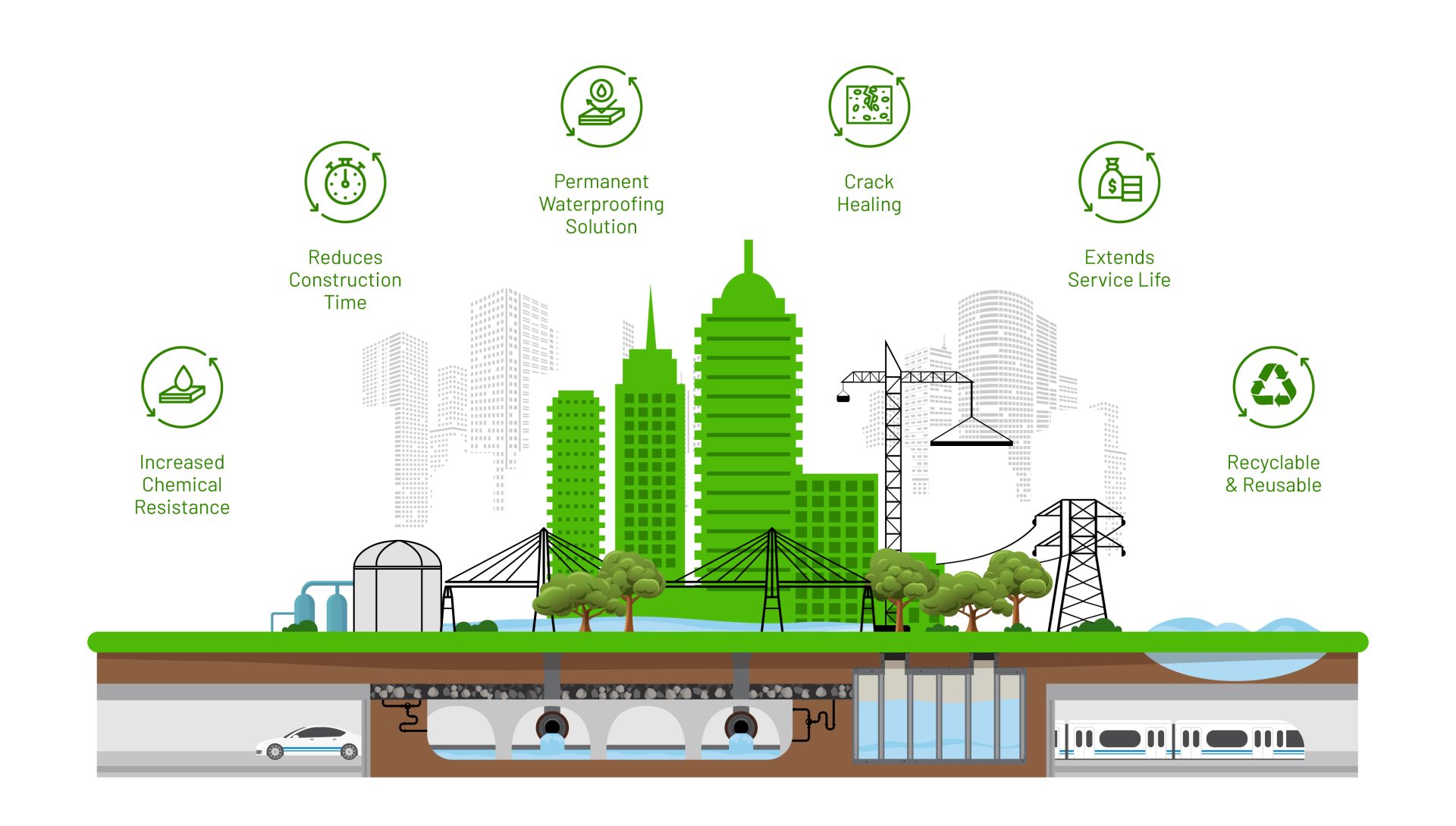 At Xypex, sustainability isn’t a new concept; it’s been our guiding principle since the company’s creation in 1969. In today’s context, sustainability means building and developing in a way that meets the needs of the present without compromising the ability of future generations to meet their own needs. Our crystalline technology epitomizes this approach, providing durable and permanent concrete waterproofing while enabling circular construction practices.