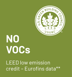 Free from harmful volatile organic compounds (VOCs), Red List Chemicals and Forever Chemicals (PFAS).